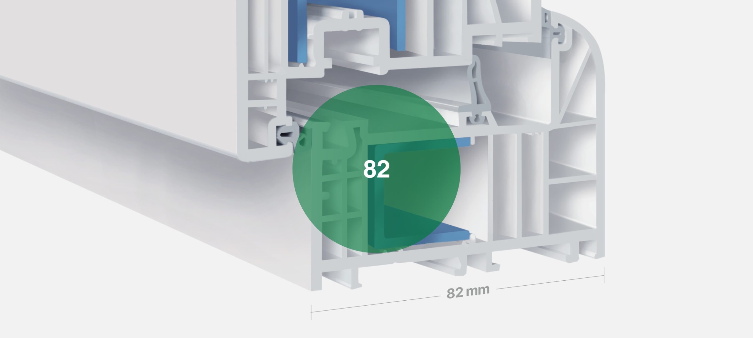 La profondità di costruzione di 82 mm della finestra ADF Design rappresenta la distanza misurata dalla faccia interna alla faccia esterna del telaio della finestra. Chiamato anche telaio della finestra, la profondità di costruzione è un elemento visibile che influenza direttamente l’efficienza energetica dell’infisso. Una maggiore profondità di costruzione consente l’installazione di un pacchetto di vetro più ampio, migliorando così le prestazioni termiche della finestra.
